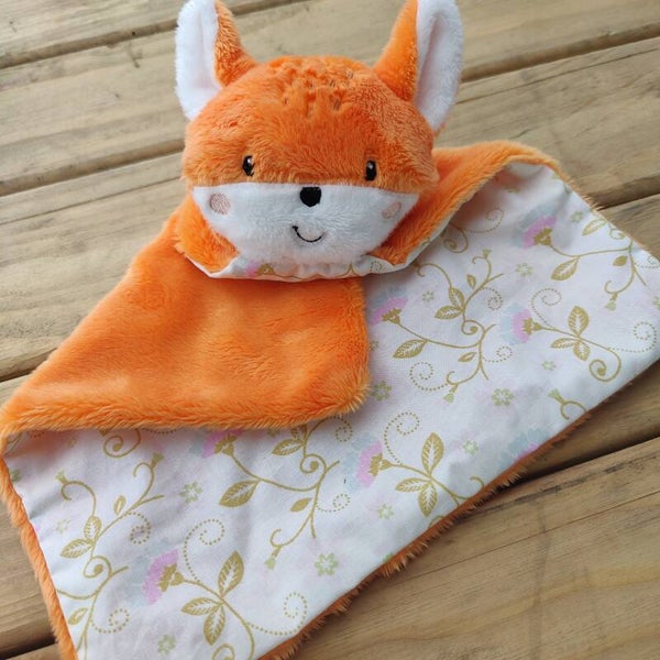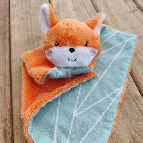 Das Schmusetuch „Fuchs“ ist ein mit Rassel versehenes Lieblingsding, das du bei maximal 40 °C waschen kannst. Das Tuch ist unten am Kopf auf einer Seite aus Plüsch und auf der anderen mit einem individuellen Motivstoff. Die Gesamthöhe beträgt ca. 42 cm. Wenn dir eines der Tiere gefällt und du möchtest, dass ein Name auf dem Tuch steht, melde dich gerne bei mir.